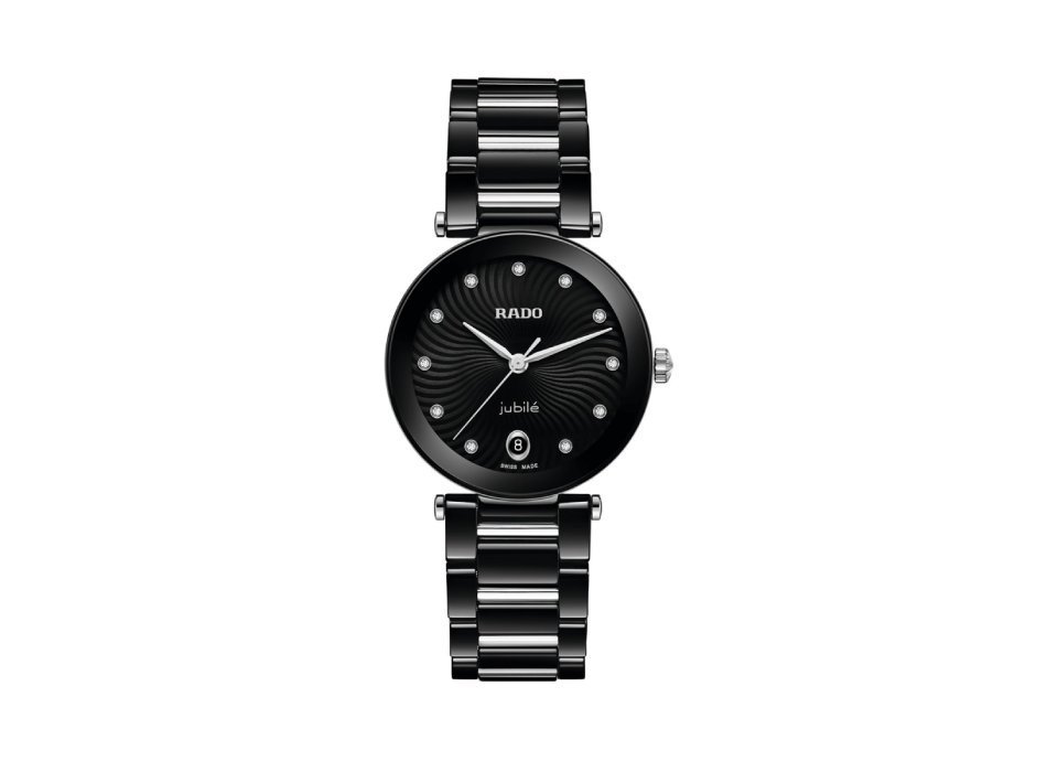 LaCoupole is een eerbetoon aan de iconen van weleer, heruitgevonden voor de verfijnde drager van vandaag. Een uiting van geraffineerde glamour, vervaardigd met de precisie en innovatie die alleen Rado kan bieden. De 31 mm monobloc kast van gepolijst zwart hightech keramiek wordt bekroond door een gewelfd saffierglas, omlijst door een zwart-zilverkleurige gemetalliseerde rand. De kast is waterdicht tot 50 meter en combineert dagelijkse robuustheid met tijdloze elegantie. Het resultaat is een silhouet dat onmiskenbaar Rado is: strak, sculpturaal en tijdloos. De zwarte wijzerplaat is voorzien van golvende markeringen gevuld met lak, wat een weelderig driedimensionaal effect creëert. De armband, vervaardigd uit gepolijst zwart hightech keramiek en verrijkt met decoratieve roestvrijstalen elementen en sluiting, sluit het ontwerp naadloos af. De LaCoupole is een symbool van elegantie: ontworpen om begeerd te worden en gemaakt om lang mee te gaan.