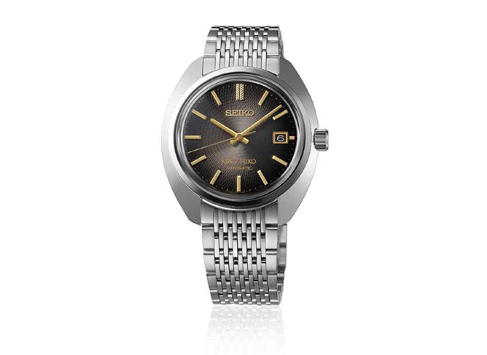 De wijzerplaat van het King Seiko-model combineert een fijn reliëfpatroon met een intens grijs kleurverloop, wat een gevoel van diepte en verfijning creëert. Een ontwerp dat ertoe verleidt om het horloge ook van heel dichtbij te bekijken. De delicate schoonheid van het motief wordt versterkt door logo, wijzers en indexen die in goudkleur zijn uitgevoerd. Het stralende contrast met de wijzerplaat straalt elegantie en verfijning uit.